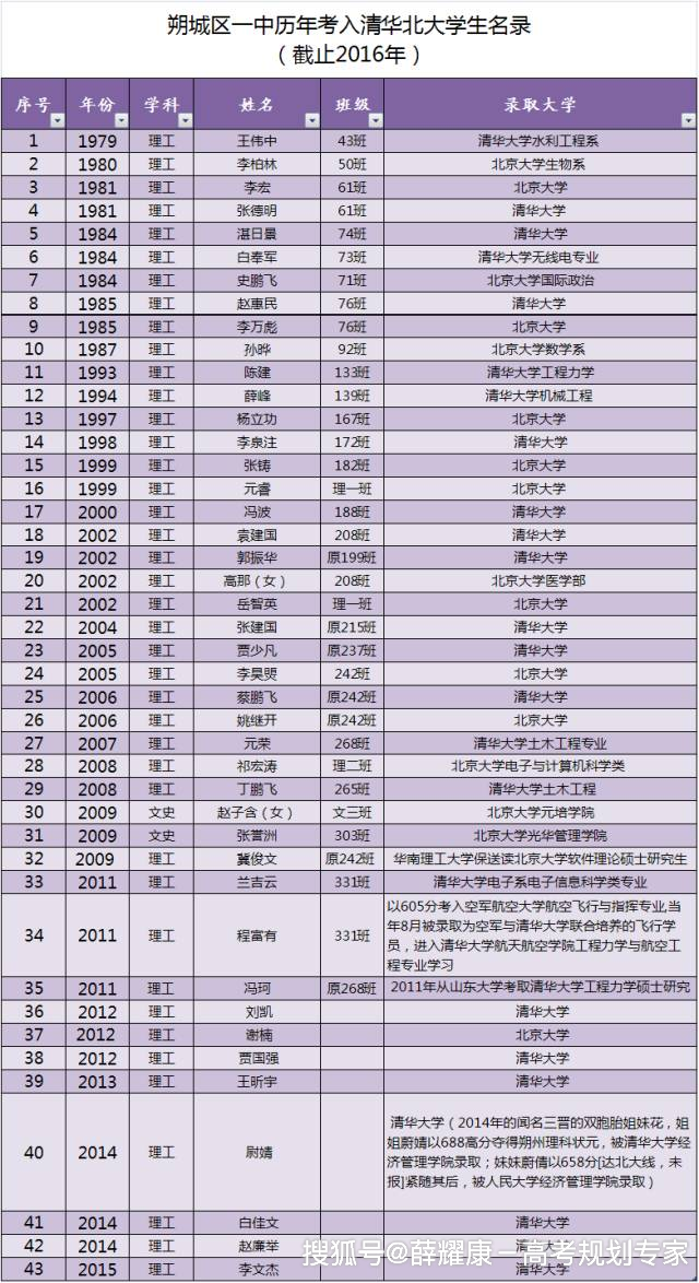 朔城区一中1979-2016年考入清华大学、北京大学 名单计算