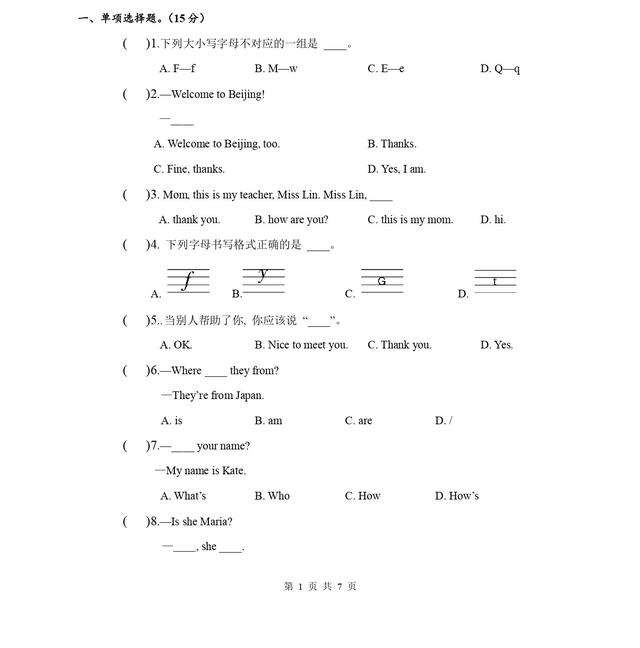 原标题:初一上册英语月考名校模仿题,家长发给孩子看看能做满分吗?
