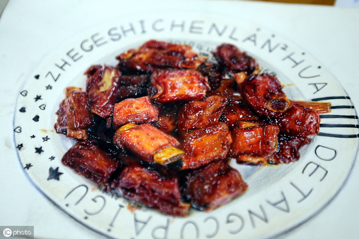 看到这盘糖醋排骨,是不是口水都流下来了,但惋惜只能看不能吃,这其实是一副画。