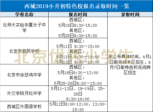 全市招生:徐悲鸿中学、月坛中学、北师大试验华夏女子中学、回民校园;