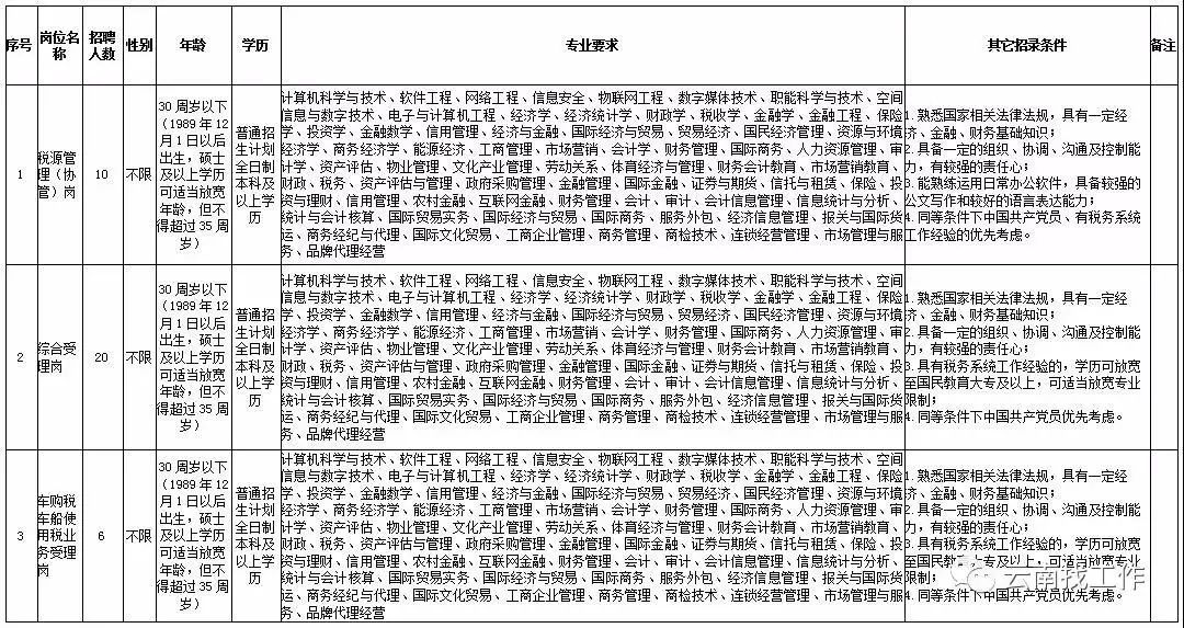 除上述条件外,报考人员还应当契合《国家税务总局昆明经济技术开发区税务局招聘作业人员方案表》中的要求。
