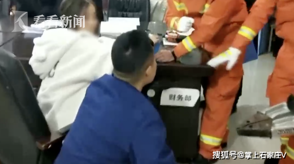 消防队员查明被卡状况后,先将订书机固定起来。“我给你说,我现在夹它(订书机)的话,你要顺着它的方向往下走。”消防员告知女学生。