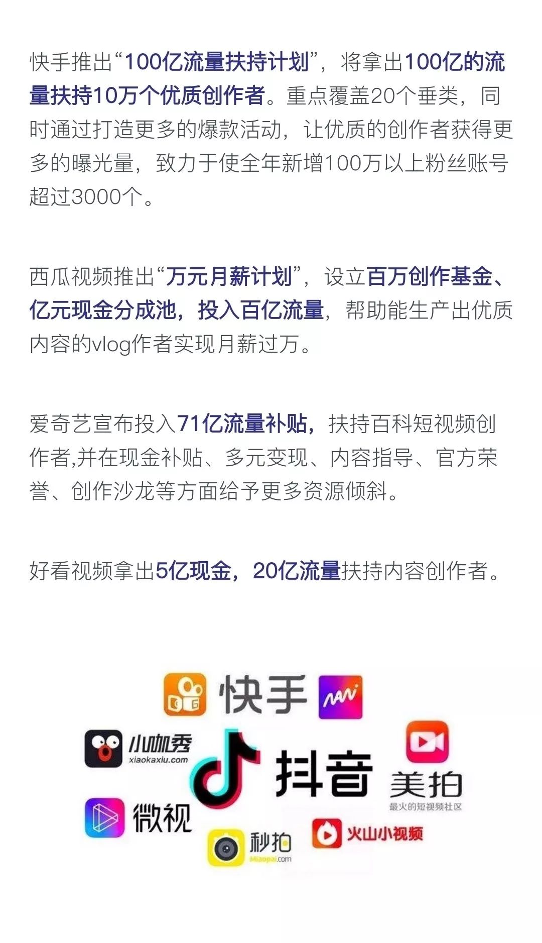 本年,是短视频盈利期的一年,流量的改变给许多范畴都带来了许多时机,尤其是年末这个阶段,各大渠道双叒提出方针扶持短视频,不信宁看看!