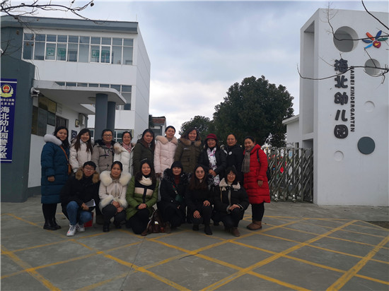 【江苏音讯】2019年12月31日,伴随着冬日的暖阳,江苏海安海北幼儿园全体师生满怀高兴的心境,以丰满的姿势,迎来了江苏海安角斜幼儿园的园长及教师一行15人,进行为期一天的跟岗沟通活动。