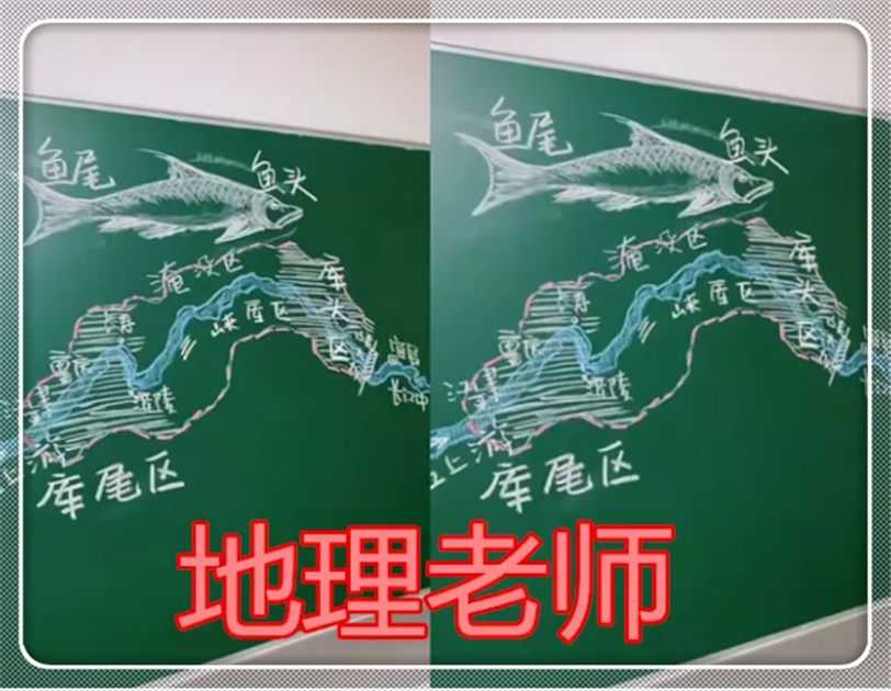 首要第一个便是地舆教师,咱们能看到图片中的这位地舆教师在黑板上画的地图,或许是为了让学生更简单了解吧,其实画地图都不算啥,这位教师还在地图受骗画了一条鱼,鱼身上的鱼鳍和鱼鳞都很传神,仍是比较凶猛的。