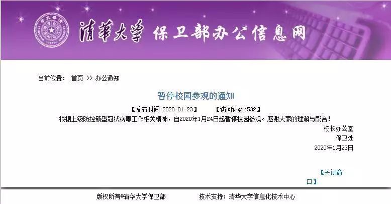 清华大学、北京大学、厦门大学发布有关暂停学校观赏的告诉。