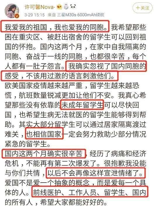 不只其言辞出格出位无底线,网友们更愤慨的是还死不悔改,更厌恶的是如同答应馨在惧怕什么,所以惺惺作态,宣布了一通口是心非的爱国言辞,如同算是“认错”吧,但言外之意充满了鄙夷与歹意,毫无诚意而言,足足让网友们反胃了一阵。